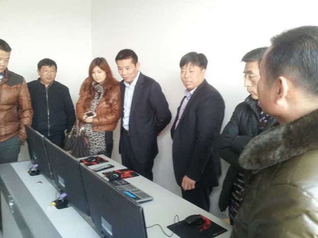 2014年1月13日,公司董事長朱大才帶領公司管理人員在林語花都項目部監控室檢查指導工作。