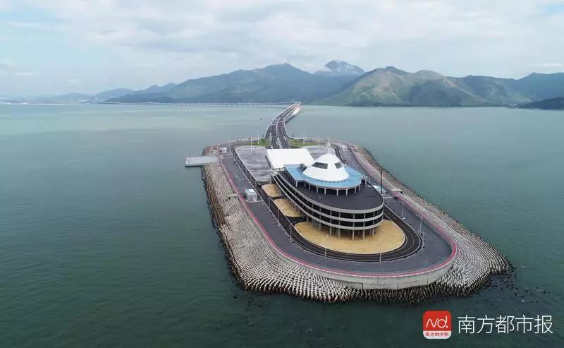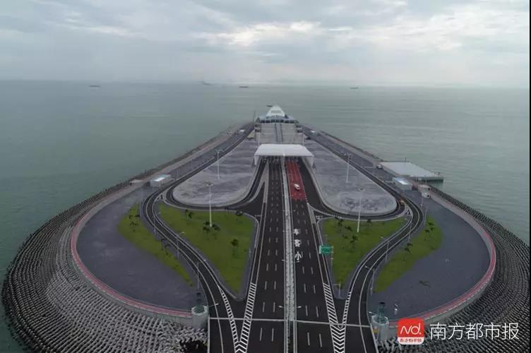 隧道兩端建有東、西兩個人工島。圖為港珠澳大橋東人工島。