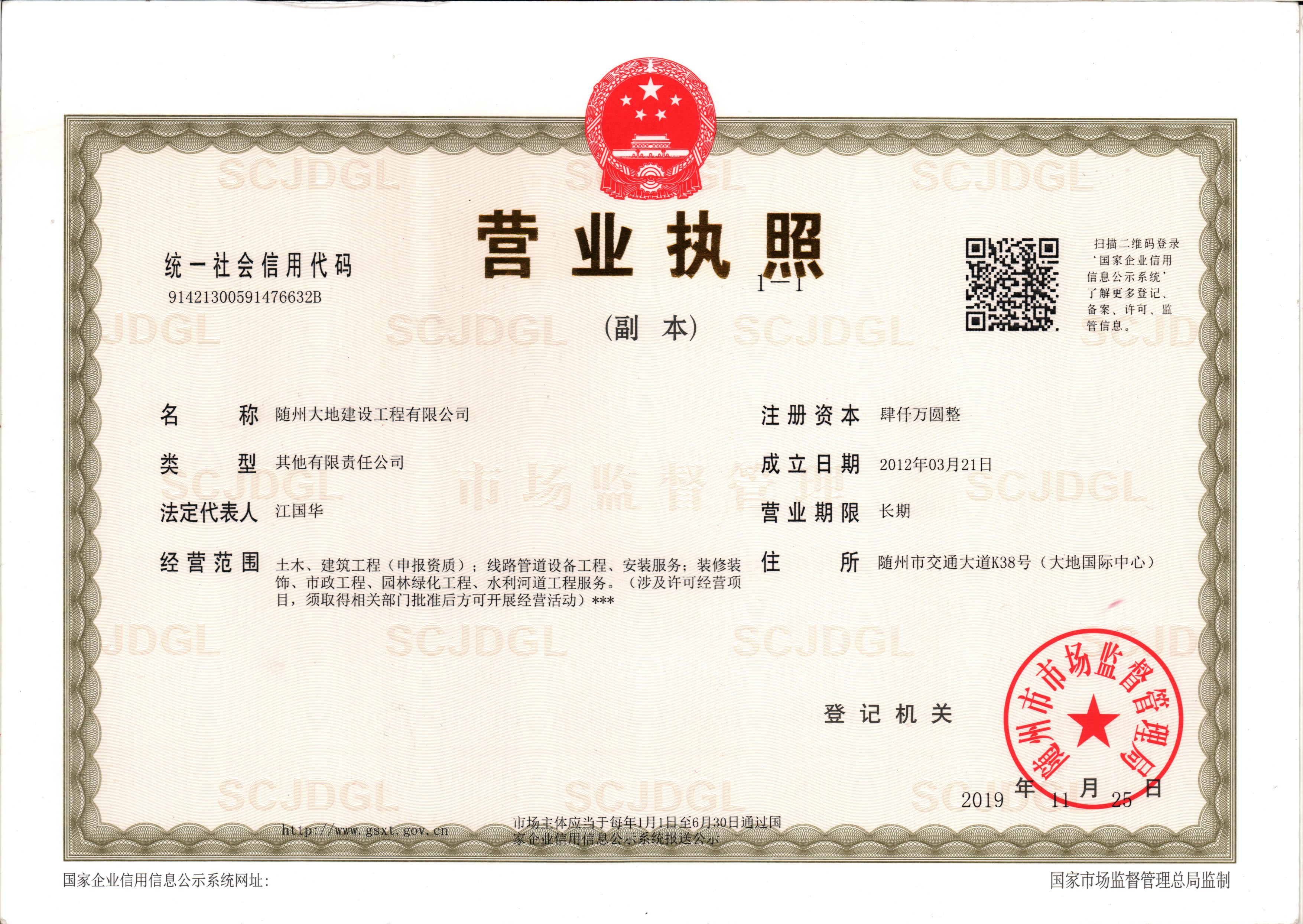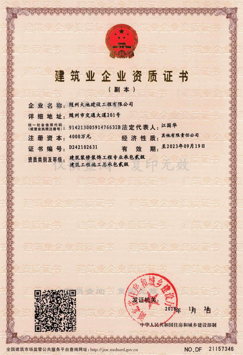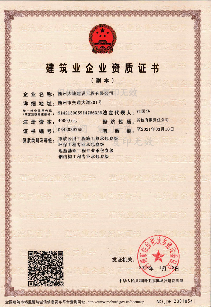 隨州大地建設工程有限公司 公司地址:隨州市交通大道K38號 大地國際中心24樓